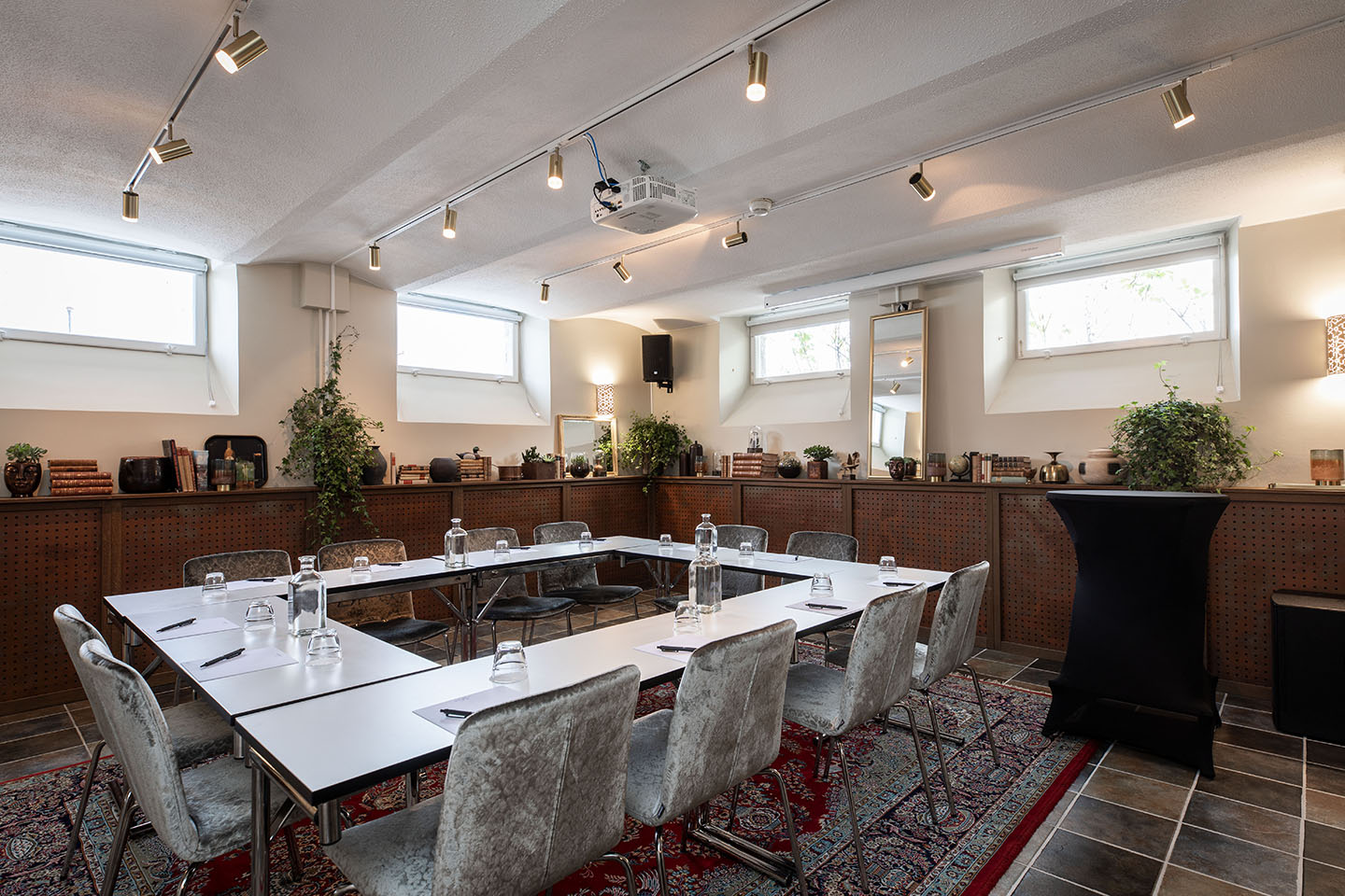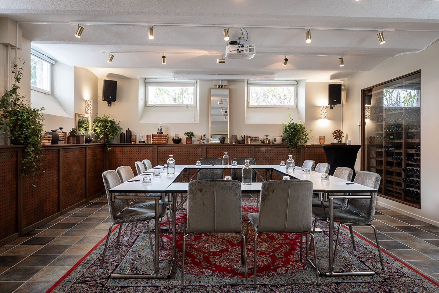 När du väljer Fröken Ellens källarvåning får du ett helt eget våningsplan för dig själv. Här har herrgårdens gamla mangelrum blivit ett konferensrum och vedkällaren en mysig lounge.