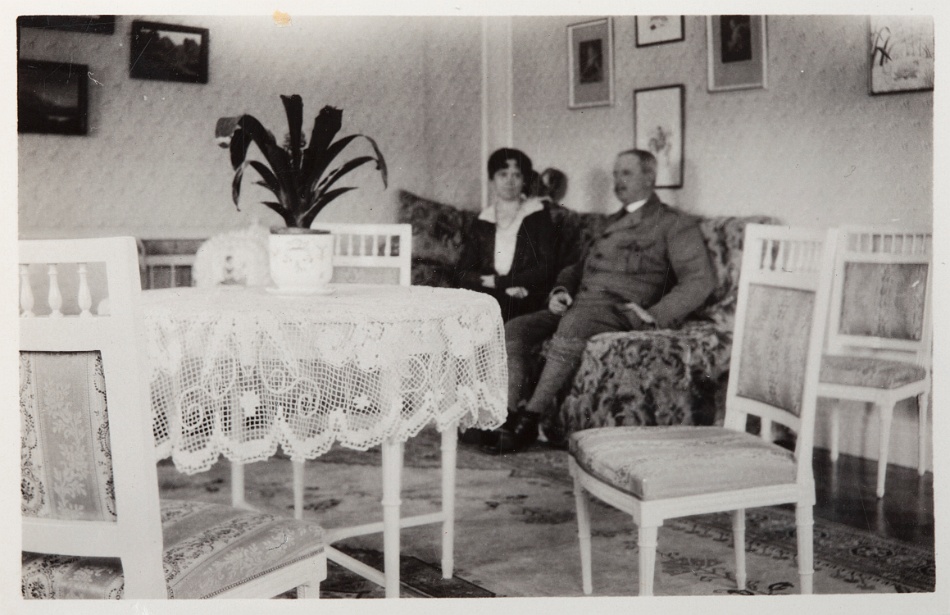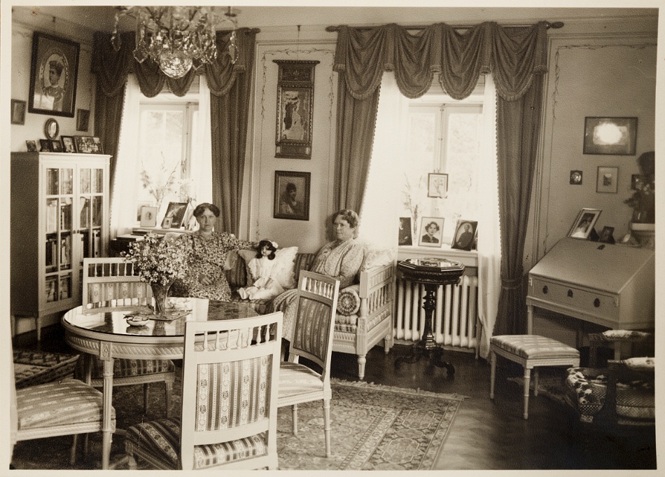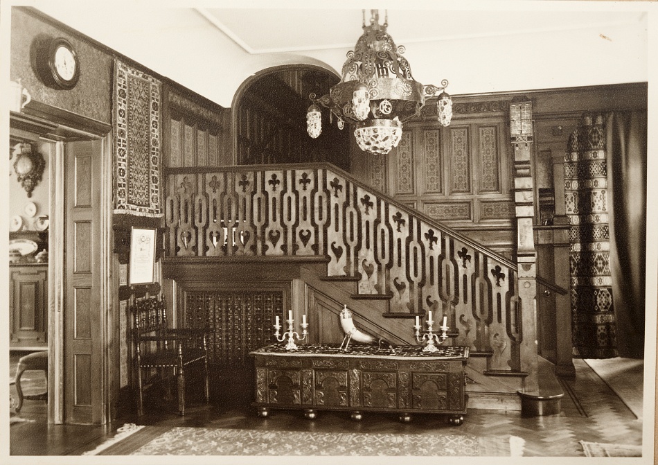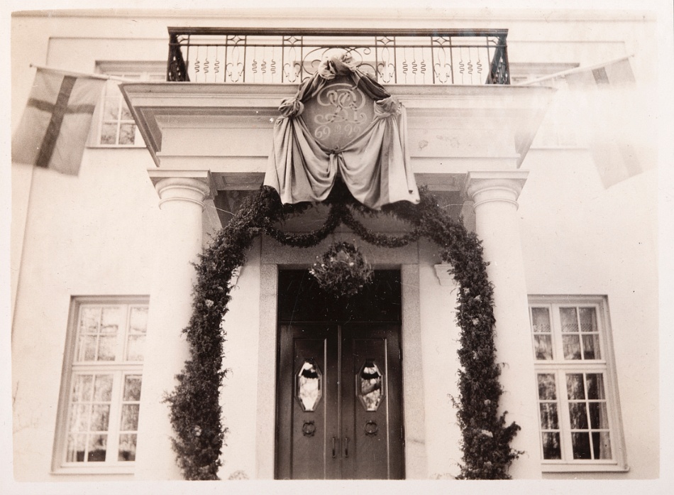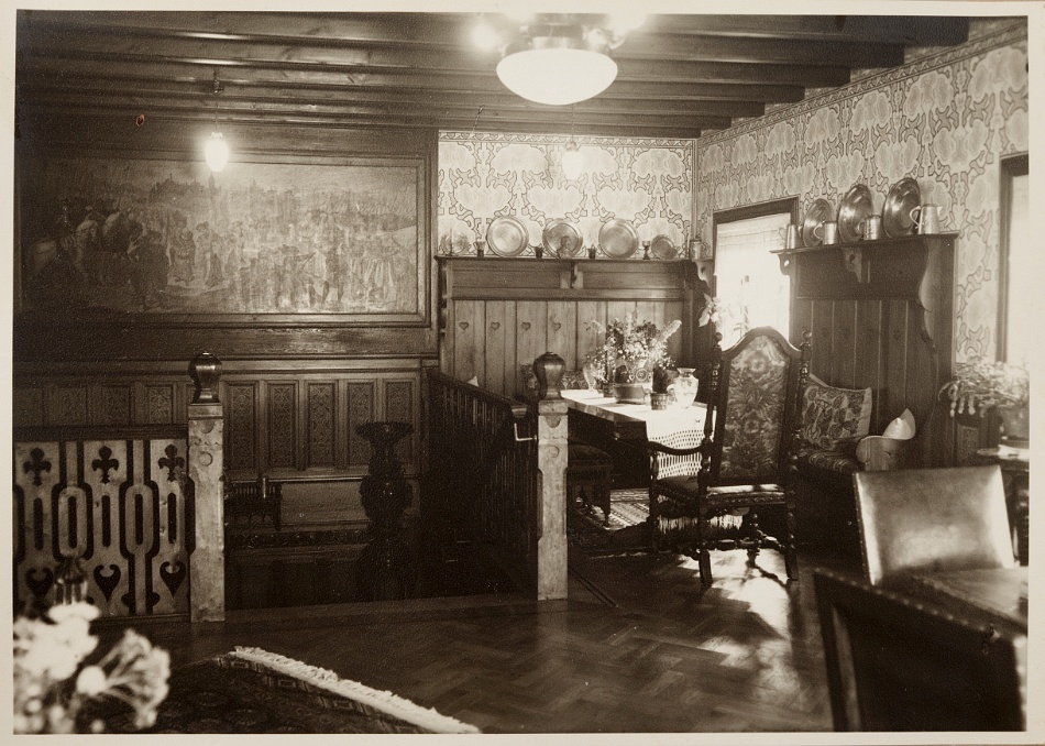 En trappa upp hade Ragnar sitt arbetsrum, som i dag är stora salongen. Förr fanns där en öppen spis så att arbetsrummet även kunde utgöra sällskapsrum för familjen. Man roade sig bland annat med att spela kort och i rummet fanns även en radio. När Ragnar lyssnade på nyheterna klockan tolv skulle det vara knäpp tyst i huset. I ett angränsande rum där det i dag finns en konferenslokal hade paret sitt sovrum och tvättrum. Husföreståndarinnan Ellens rum är nu hallen och toaletterna vid övergången till huvudbyggnaden.