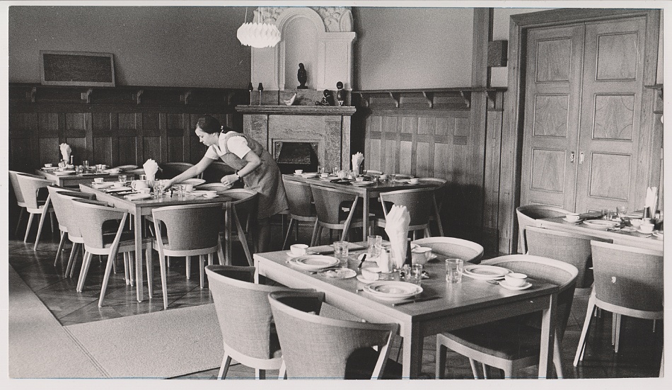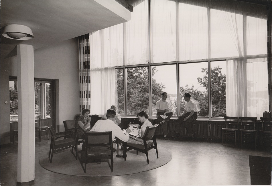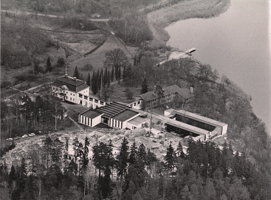 I början av verksamheten bodde, åt och konfererade deltagarna i Herrgården. I källaren låg ett badrum som man fick samsas om. Kursdeltagarna bodde på vinden i rum inredda med 4-6 bäddar i varje rum. I herrgårdens matsal åt man i grupper om 30 personer för att sedan successivt öka i antal. 1953 påbörjades arbetet med en byggnad för förläggning. I oktober året därpå kunde de första kursdeltagarna få pröva på lyxen med tvåbäddsrum och handfat på rummet. I korridoren fanns det duschar och toaletter och så såg det ut ända till 1989.