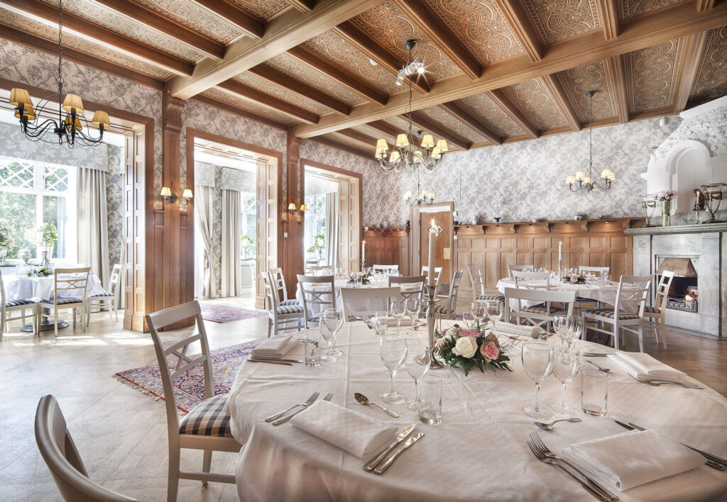 Vår största matsal hittar du högst upp på Falkberget, med vacker utsikt över Edsviken. Den stora matsalen ligger i direkt anslutning till baren och stilen här är modern. Om du föredrar äldre miljöer dukar vi istället gärna upp i genuin herrgårdsmiljö från tidigt 1900-tal. I herrgården kan vi dels erbjuda en lite större matsal med vacker utsikt över allén, dels finns här även mindre och mer intima rum att duka upp i.