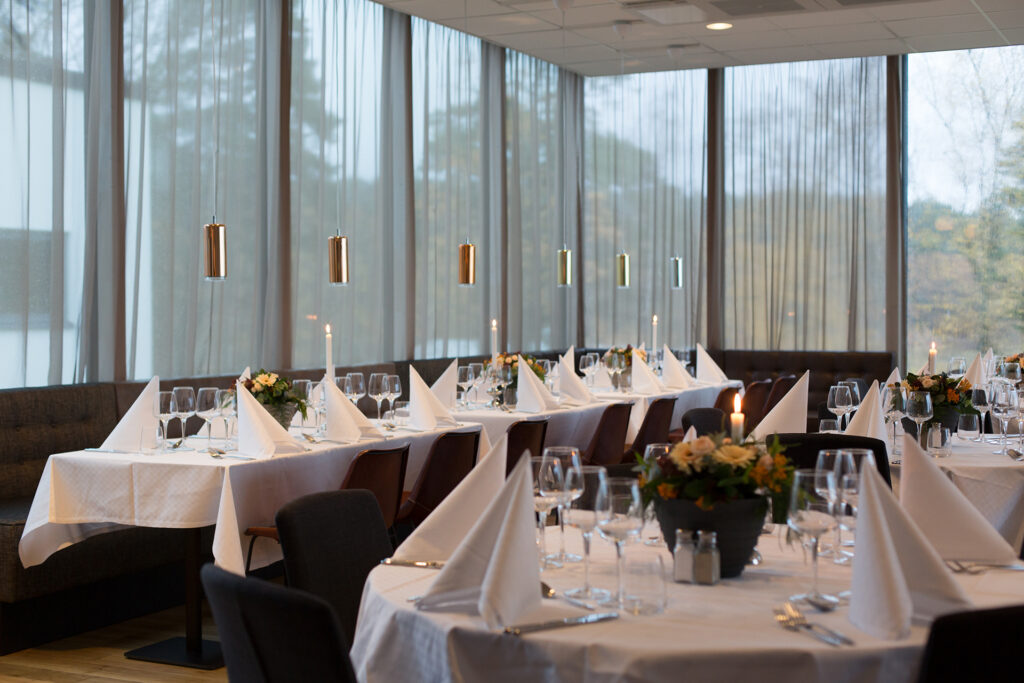 Matsalen är uppdelad i fyra delar: Stora Havsutsikten, Lilla Havsutsikten, Parkutsikten och Insikten. Vid större tillställningar går det utmärkt att abonnera hela matsalen, liksom det vid mindre tillställningar naturligtvis går lika bra att abonnera delar av den.